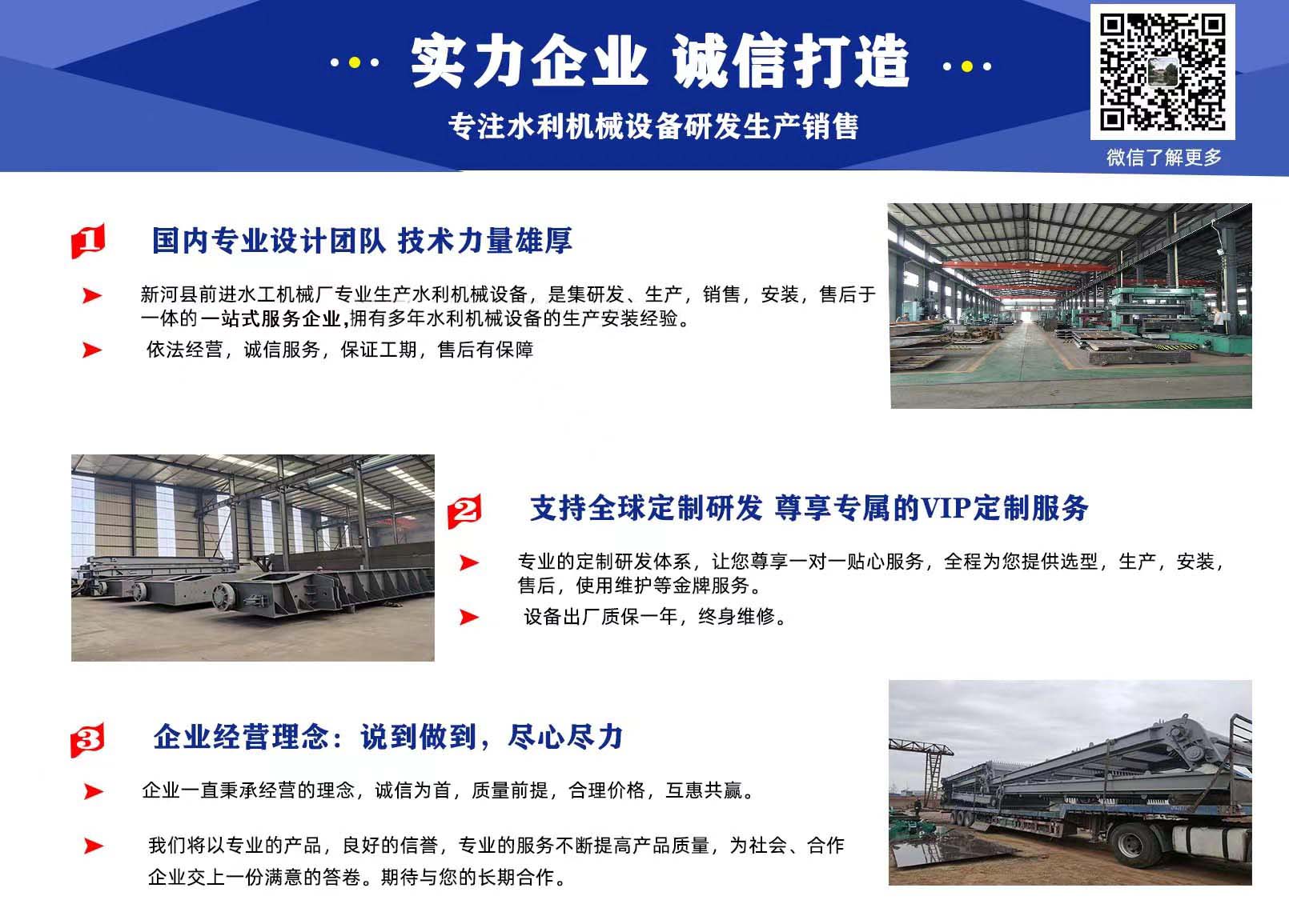 前進水工優勢:具有專業研發團隊,精湛的制造工藝,嚴謹的檢驗技術,完善的售后服務